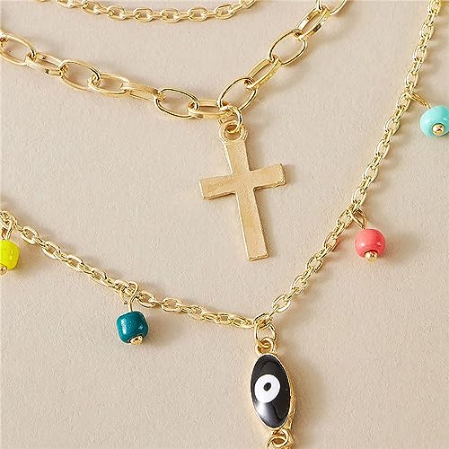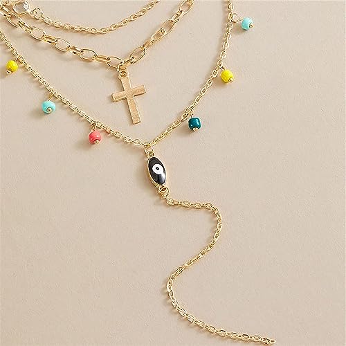 Embrace the allure of the Layered Cross Pendant Necklace, uniquely designed to cater to women who value distinct and elegant jewelry. This remarkable necklace effortlessly merges the charm of a cross pendant and the mystery of an evil eye, offering protection and good fortune.
