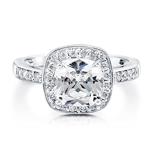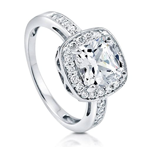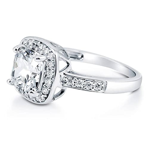 Discover the timeless sophistication of the BERRICLE Sterling Silver Halo Wedding Engagement Ring. Designed for women seeking classic elegance, this ring features a stunning 3-carat cushion-cut cubic zirconia, perfectly mimicking the cut and brilliance of a real diamond.