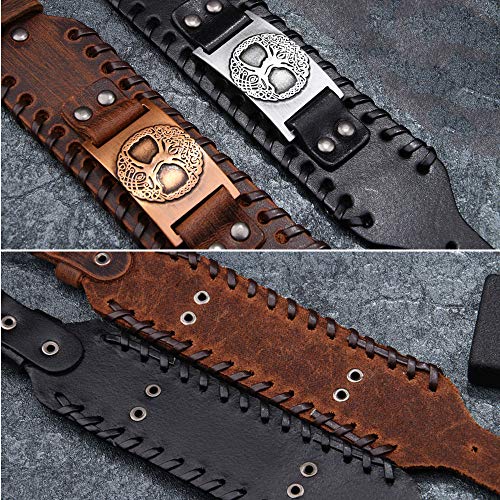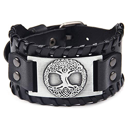 "Embrace the heritage and symbolism of Nordic culture with the TURTLEDOVE Viking Bracelet featuring the Tree of Life Yggdrasil Amulet. This thoughtfully designed leather bracelet perfectly blends durability and style, making it an ideal accessory for everyday wear or special occasions.