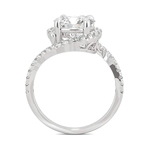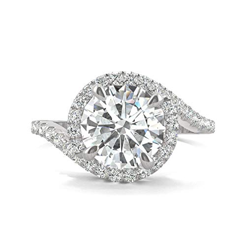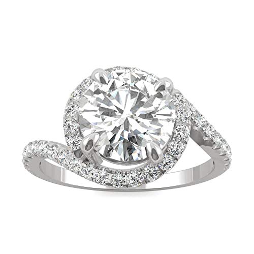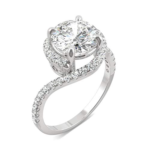 Discover the timeless elegance of the Charles & Colvard 14K White Gold Moissanite Engagement Ring. This stunning piece features a 8mm round brilliant cut Moissanite gemstone, set in rhodium-plated 14K white gold with a secure four-prong setting. Designed for a ring size 5, it combines beauty with durability.