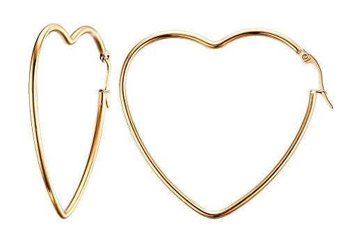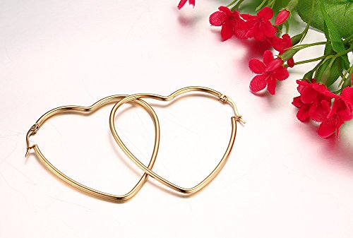 Discover the charm of our Women's Stainless Steel Gold Plated Heart Shape Hinged Large Hoop Earrings. Designed for those who appreciate both style and comfort, these hypoallergenic earrings bring a touch of elegance to your everyday look.