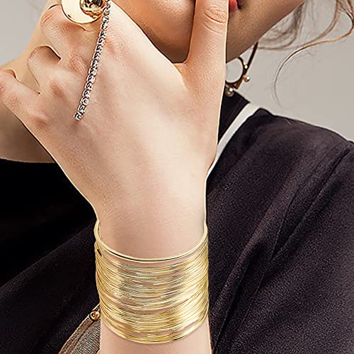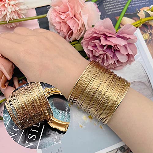 Design: The set includes wide gold cuff bangles, thin bangle bracelets, and modern wire designs. Their open design fits most wrists, making them easy to put on and take off.