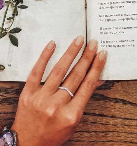 Design: The scalloped cubic zirconia stones form a subtle chevron shape, allowing the ring to be worn either as a standalone piece or stacked with engagement or wedding rings for a coordinated look.