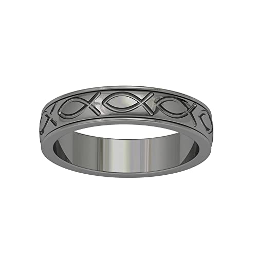 Design: This band ring features an intricate Fish Ichthys pattern, a classic Christian symbol representing faith and devotion.