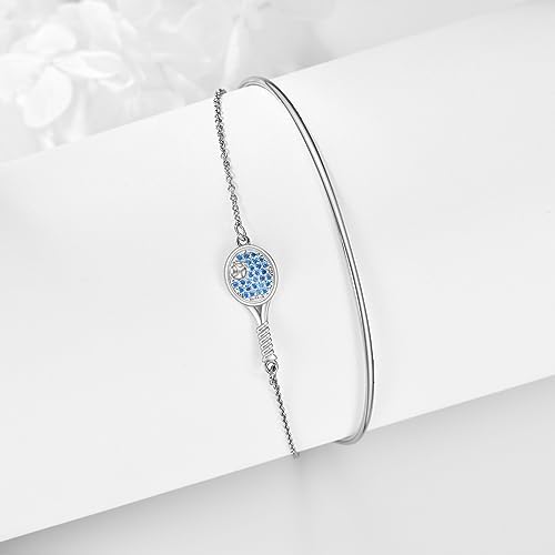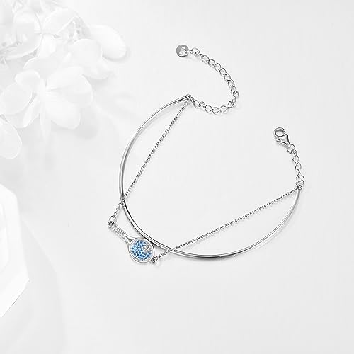 Size: The base bracelet diameter is 2.56 inches with an extra 2 inches extendable chain for adaptable fitting. The racket charm size is 0.35 by 0.94 inches.