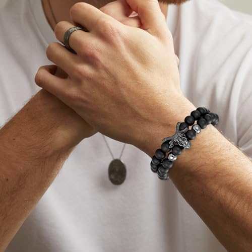 Experience the unique allure of the VA JENT Skull Beaded Bracelet, meticulously designed to appeal both aesthetically and symbolically to the modern man. This men's bracelet combines punk-inspired style with refined craftsmanship, marking it as a signature accessory for the daring individual.