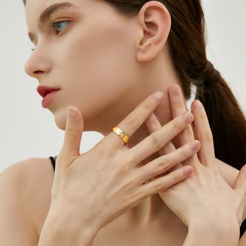 - **Material:** Crafted from sturdy stainless steel with an 18k gold plated finish, these rings are designed to withstand everyday wear and tear while maintaining their luster.