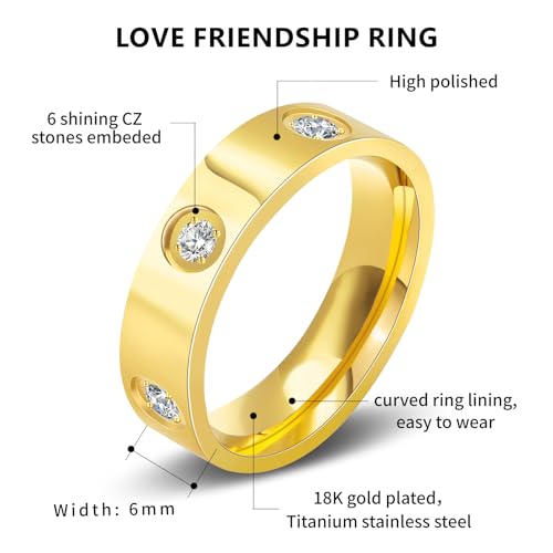 Discover the allure of the Love Friendship Gold Rings for Women, an ideal expression of affection and friendship. Perfect as wedding bands, these rings, available in sizes 6 to 10, are crafted from durable stainless steel and adorned with high-quality cubic zirconia stones, ensuring a lasting shine.