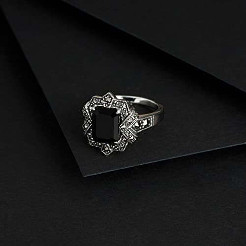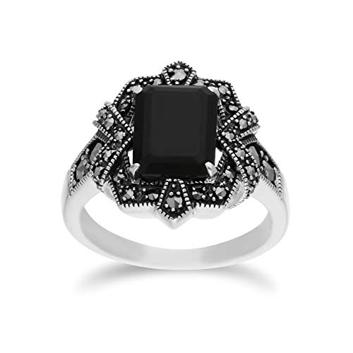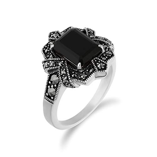 Discover the elegance of the Gemondo Black Onyx Ring, a stunning piece designed to make a statement. This art nouveau inspired ring features a large octagon cut black onyx gemstone, set in 925 sterling silver and adorned with sparkling marcasite stones. Ideal for those who seek sophistication, the ring is perfect for birthdays, anniversaries, or any special occasion.